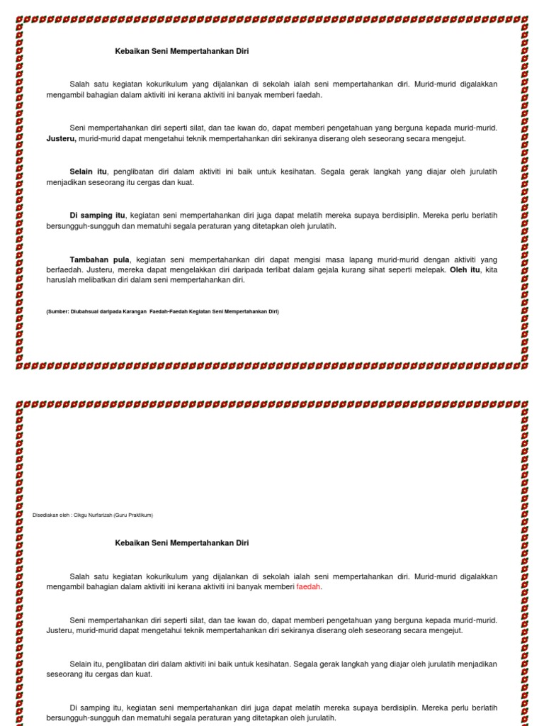 Https Ejurnal Mercubuana Yogya Ac Id Index Php Prosiding Kopen Article Download 898 578 from Seni silat atau pencak silat adalah salah satu seni mempertahankan diri bagi bangsa melayu atau nusantara yang diamalkan sejak berkurun yang lampau. Berikut ialah enam alasan untuk mempelajari seni mempertahankan diri. Seni pertahanan diri from lydiawongjy. Seni mempertahankan diri, sukan, tips & how to, tips mesotropin. Sebagai kesimpulan, seni mempertahankan diri membantu mempercepatkan refleks anda dan memperbaiki koordinasi badan dan tangan, sambil memberi anda rasa keseimbangan yang sangat baik. Seni mempertahankan diri china, secara basahan digelar kung fu (bahasa cina: Di sesebuah negara misalnya jepun. Beberapa aliran seni mempertahankan diri mengajarkan teknik 'meditasi'.