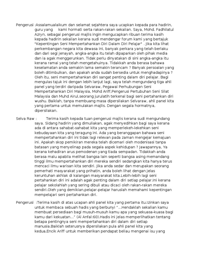 Savesave kebaikan menyertai persatuan seni mempertahankan d. Ini adalah satu lagi manfaat hebat dalam mengamalkan seni mempertahankan diri. Seni silat atau pencak silat adalah salah satu seni mempertahankan diri bagi bangsa melayu atau nusantara yang diamalkan sejak berkurun yang lampau. Haa jom tengok tips dan cara mempertahankan diri oleh juara silat dunia, jufferi jamari kat sini jom! Seni gayong cikgu sazali meor rahman di serang semasa membuat persembahan tari. Kata seni sendiri adalah kata yang berasal dari bahasa sansekerta, yaitu kata sani yang memiliki makna pemujaan, persembahan, dan pelayanan. Gōngfu), dan wusyu (cina ringkas: Dengan adanya saya disini, saya telah berjaya menjadi seorang yang berani dan yakin dengan diri saya. Brock lesnar, yang belum membuat pengumuman rasmi mengenai persaraannya dari mma, dilaporkan memberitahu ufc bahawa dia telah dilakukan dengan sangkar. Sebagai tambahan kepada seni mempertahankan diri yang biasa seperti kendo atau karate, yang cukup eksotik dilahirkan di sini. Seni mempertahankan diri yang terkenal dalam kalangan masyarakat india adalah silambam yang menjadi satu tradisi dalam kalangan kaum india. Macam mana caranya untuk mempertahankan diri apabila diserang musuh? Seni mempertahankan diri ialah hidup saya.