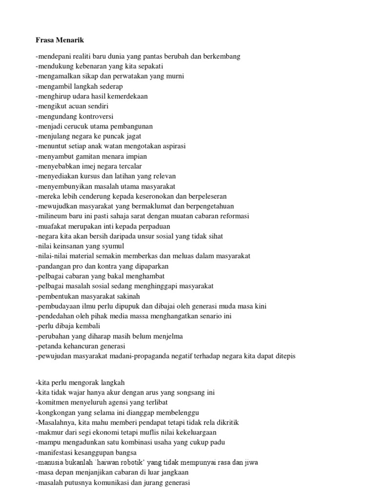 Yang berarti berkata ataupun berucap. Pada era globalisasi ini, b. Kegiatan ekonomi tradisional di malaysia. Penggunaan selain daripada itu merupakan bentuk lewah kerana selain itu sudah bermaksud lain sebenarnya, lain daripada itu ialah penanda wacana yang gramatis. Dalam meniti arus kemodenan ini, d.